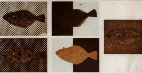 การเปลี่ยนแปลงตามสิ่งแวดล้อม ปลาส่วนใหญ่สามารถปรับสี และลวดลายบนตัวให้กลมกับถิ่นกับสภาพแวดล้อมได้ดีมาก ทั้งยังเพื่อหลบหลีกอันตรายจากศัตรูของมัน ตัวอย่างที่ดี ในเรื่องนี้ ได้แก่ ปลาจำพวกปลาซีกเดียว (Bounder) ซึ่งสามารถเปลี่ยนสีได้รวดเร็วมาก ได้พบว่าการกระตุ้นที่ทำให้เกิดการ เปลี่ยนสีและลวดลายบนตัวปลา เกิดจากการ มองเห็นของปลา แล้วทำให้เกิดการเปลี่ยนแปลงบางอย่างทางด้านสรีรวิทยาและการยืดหดของเซลล์สร้างสีในผิวหนังของปลา ในภาพนี้หากหัวปลาอยู่บนพื้นที่มีสีขาว ปลาจะ มีสีจางมาก เมื่อเปลี่ยนพื้นเป็นสีดำ ปลาตัว นั้นก็จะเปลี่ยนสีดำเข้มขึ้น หากปลาอยู่บนฟัน ที่ที่มีสีดำขาวประปราย ปลาก็จะเปลี่ยนสีและ ลวดลายให้กลมกลืนเข้ากับสภาพแวดล้อมด้วย