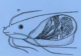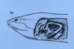 ส่วนหัวของปลา ตัดเปัดแสดงให้เห็นส่วน ของเหงือก อวัยวะนี้เป็นลักษณะเด่นที่ สำคัญของสัตว์จำพวกปลา ช่วยให้ปลาหาย ใจในน้ำได้ดี