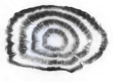 ชิ้นกระดูกในกล่องหูของปลา ซึ่งทำให้ปลารู้สภาพการทรงตัวของมันในน้ำและยังมีประโยชน์ในการ ศึกษาเกี่ยวกับอายุ และการเจริญเติบโตของปลา ภาพนี้เป็นภาพขยายของชิ้นกระดูกในกล่องหูของปลาซีกเดียวที่เรียกว่า เพลซ (plaice)อยู่ในครอบครัวพลูโรเนกติดี (Pleuronectidae) ซึ่งมีถิ่นฐานที่อยู่อาศัยใน เขตอบอุ่น แสดงวงปีให้เห็นอย่างชัดเจน ในภาพนิแสดงว่าปลามีอายุย่างเข้าปีที่ 4 แล้ว